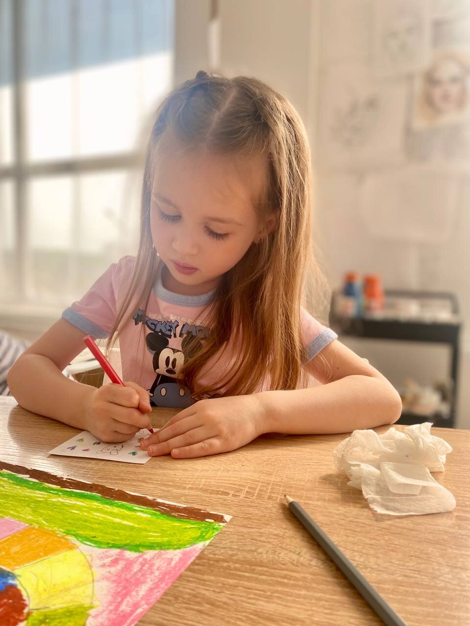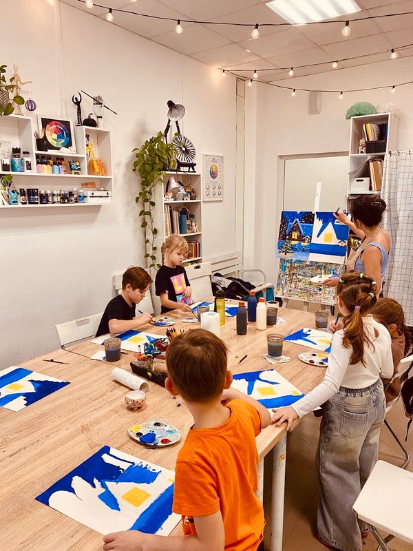 Ходим на занятия каждое воскресенье. Ребенку 7-ми лет нравится заниматься, а особенно атмосфера и преподаватель Ирина. Ребенок получает хорошие эмоции, в студии всегда весело и по-домашнему. Педагог все доступно объясняет. Результат заметен. Рисуют в основном акварелью. Все принадлежности в студии свои.