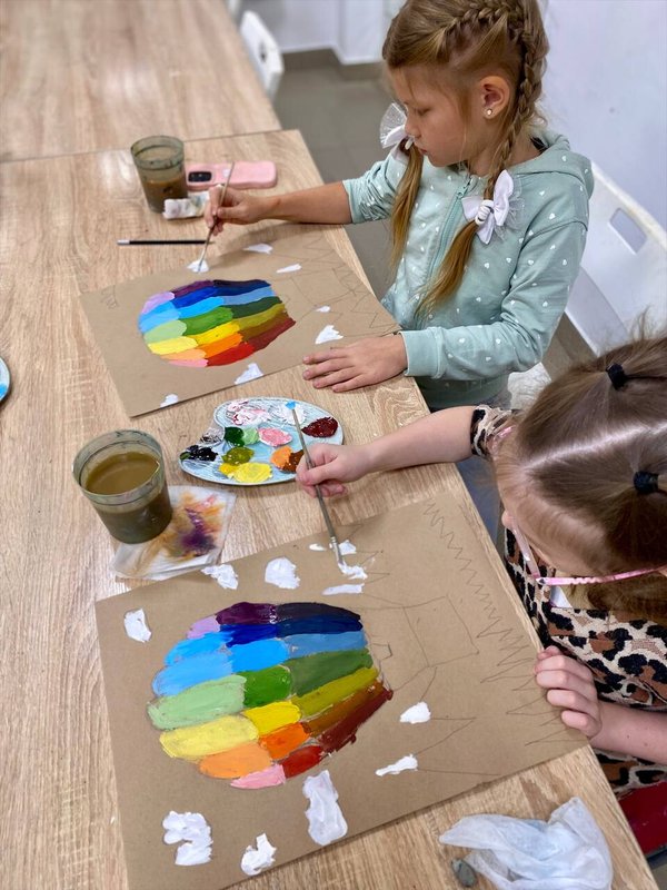 Подход к детям мне нравится, они довольны, приходят из студии и говорят, что добрая тетя хорошо им все объясняет. Занятия проходят раз в неделю, посещать их мы начали недавно, но дети уже нарисовали две картины.